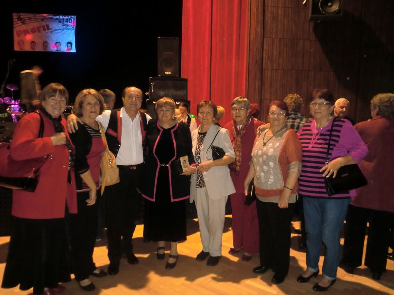 Zábavný program hudobnej skupiny Profil a ich hostí (09.11.2014) Na oslave skupiny Profil pri príležitosti ich 40 rokov aktívnej hudobnej činnosti sa v KD Trnava zúčastnilo aj 20 našich členov. Pestrý hudobný program dopĺňali hostia skupiny Profil – heligonkárky sestry Bacmaňákové, spevák Ľudovít Kašuba a svojím ostrovtipom duo Meluš & Kajzer. Potešili sme sa pozornosťou vedúceho skupiny Profil pána Jána Žitňanského, ktorý nám venoval svoju pozornosť, dokonca sa s nami aj odfotografoval. Želáme všetkým umelcom, ktorí rozdávajú svojimi piesňami radosť a potešenie nielen nám starším, aby i naďalej šírili a popularizovali „staro-nový“ hudobný žáner.