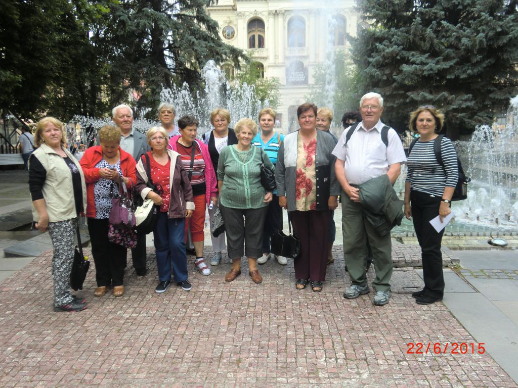 Výlet vlakom do Košíc (22.06.2015) radi sme využili voľné lístky pre seniorov v ŽSSR a 14 členovia našej ZO sme sa zúčastnili výletu do Košíc.....akože na kávu... Ale videli sme Dóm sv. Alžbety, kde sme si zaspievali krásne mariánske piesne, stĺp Imaculata - postavený na mieste niekdajšieho popraviska, krásne centrum mesta so spievajúcimi fontánami a blízke historické pamiatky. Po dobrom obede a chutných sladkostiach sme vyrazili na cestu domov. Pri hrách a speve nám cesta ubehla ako voda.... tú sme priniesli vo forme užitočného dažďa.....
