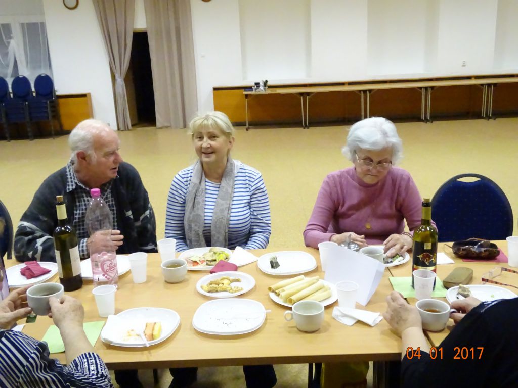 Členská schôdza ZO JDS - Seniorklub (04.01.2017) Na tomto stretnutí predsedníčka ZO pozdravila všetkých prítomných novoročným vinšom. Zhodnotili sa akcie za mesiac december a formou ankety i vybrané podujatie v roku 2016. Členovia mali možnosť navrhnúť akcie na rok 2017, aby sa mohli aktívne zapájať do činnosti ZO. Nezabudlo sa ani na januárových oslávencov – Antóniu, Ernesta a pani Agnešu. Všetkým zaželali všetko najlepšie k ich osobným sviatkom.