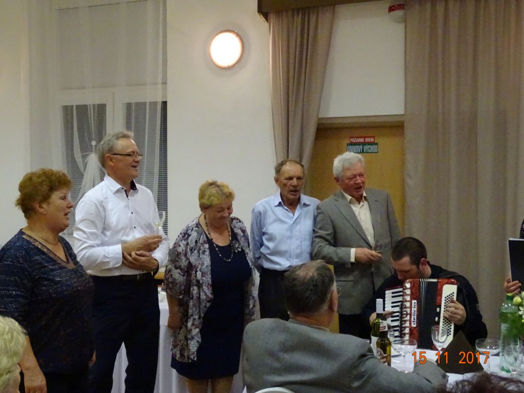 Oslava životného jubilea (15.11.2017) Po pravidelnej členskej schôdzi sme boli pozvaní na oslavu životného jubilea nášho pána starostu – Miroslava Sučáka. Okrem členov našej ZO pozvanie prijali funkcionári športovcov a hasičov, pán farár i ďalší hostia. Predsedníčka ZO JDS v mene všetkých zaželala jubilantovi veľa zdravia, pevnej sily a do ďalších rokov lásku a šťastie v kruhu svojich najmilších. Speváci potešili oslávenca vtipnou častuškou a obľúbenými pesničkami, ale seniori si spoločne s oslávencom aj zatancovali. Ďakujeme pán starosta za krásny večer a ešte raz prajeme do ďalších rokov veľa tvorivých síl pre našu obec.