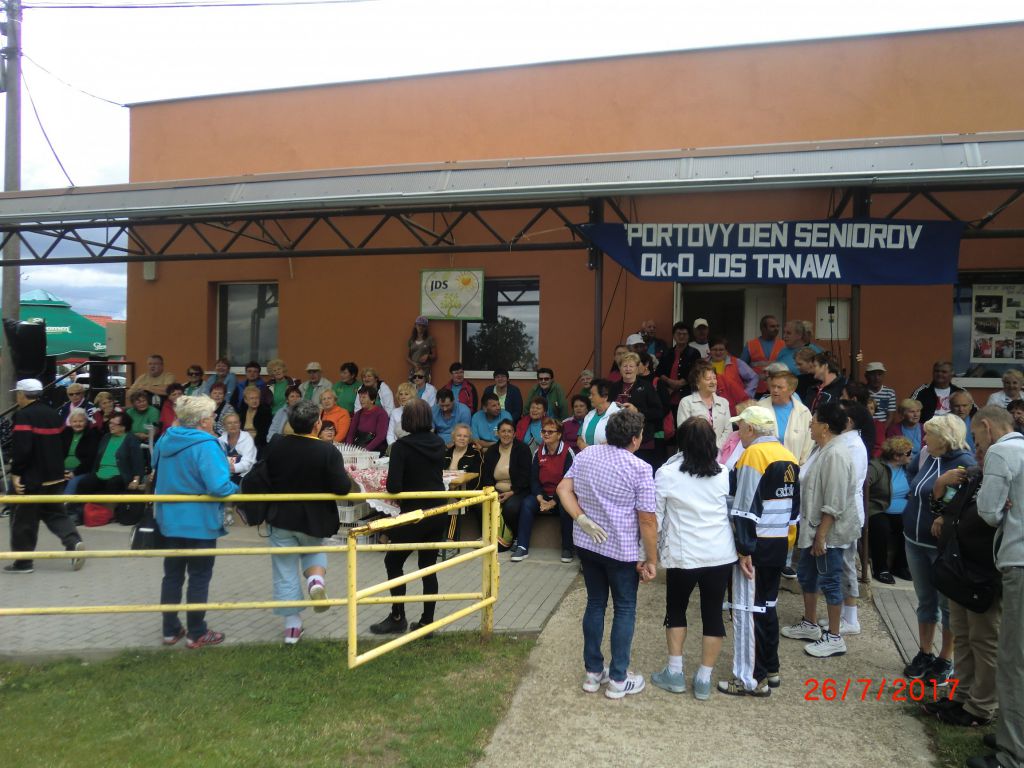 Športový deň seniorov okresu Trnava Špačince (26.07.2017) aj naši členovia sa pripojili k 410 účastníkom okresu Trnava. Zapojili sa do viacerých branno-športových disciplín; hod granátom, valčekom, kriketovou loptičkou, petang, futbal – kopanie jedenástok, streľba zo vzduchovky. I keď nezískali žiadne ocenenie, zúčastnili sa pekného podujatia, stretli sa so svojimi známymi z okolia. Zástupcovia 19 ZO JDS a 2 hosťujúce ZO z Hodonína a Piešťan dostali diplomy za účasť na športovom dni a víťazi boli odmenení medailami. Vďaka patrí ZO JDS Špačince a starostovi ich obce, ktorí sa postarali o pekný priebeh celej akcie.