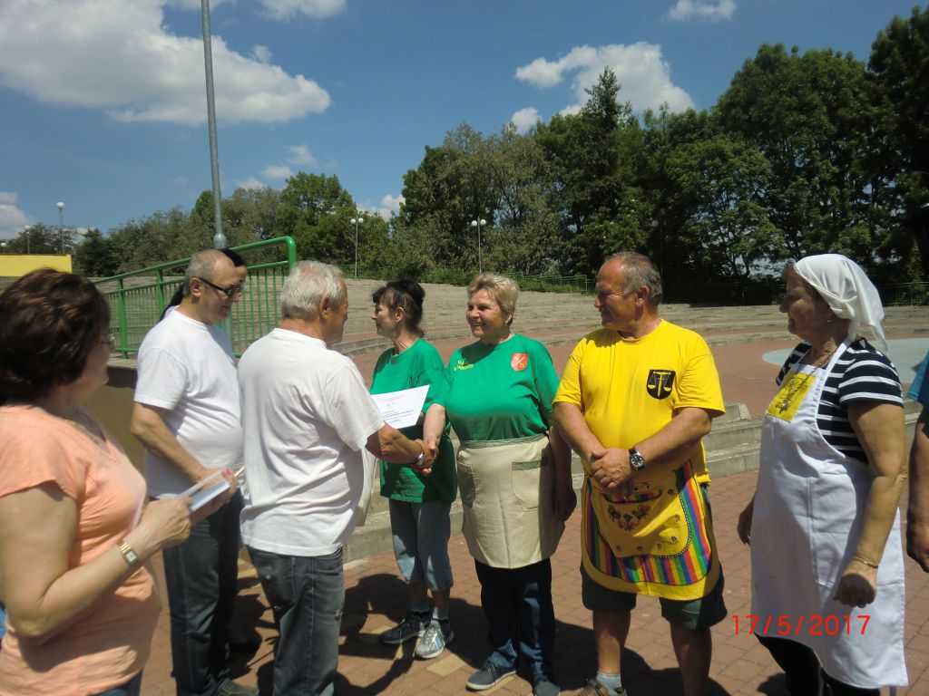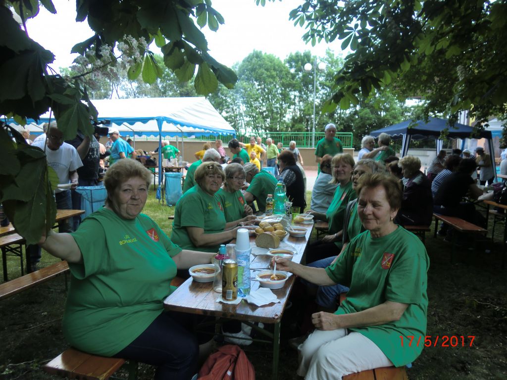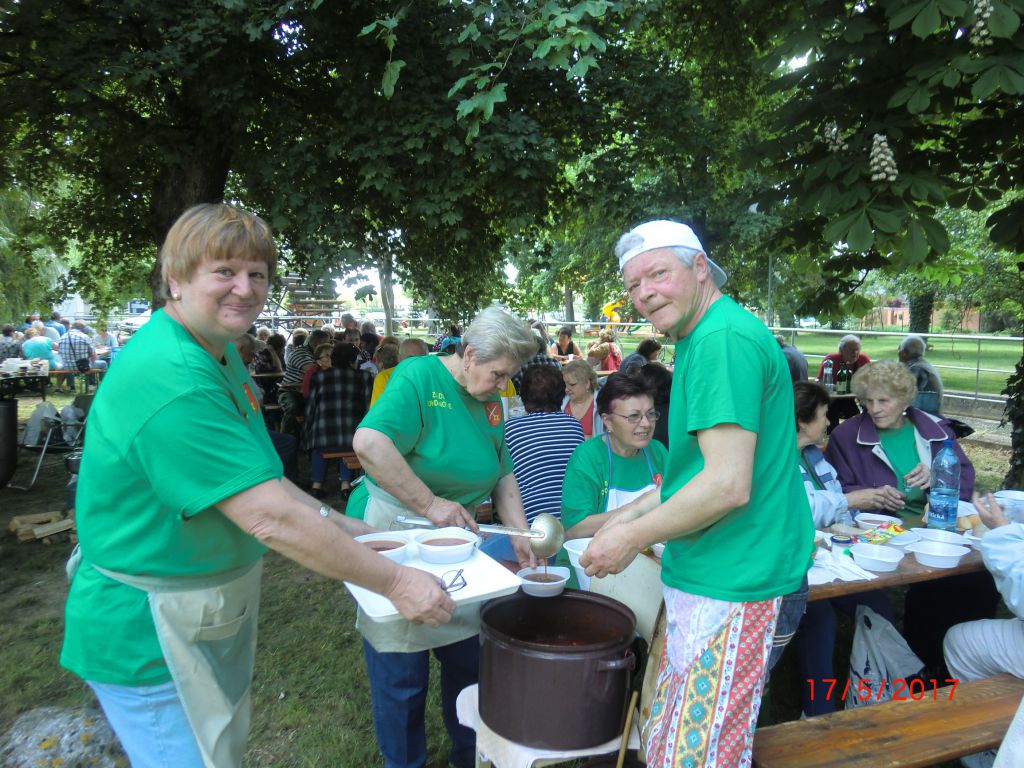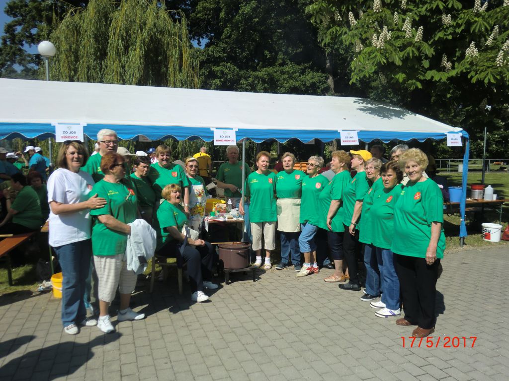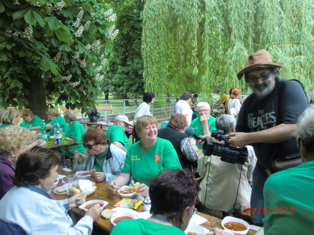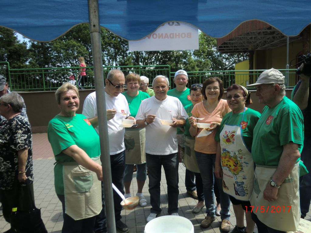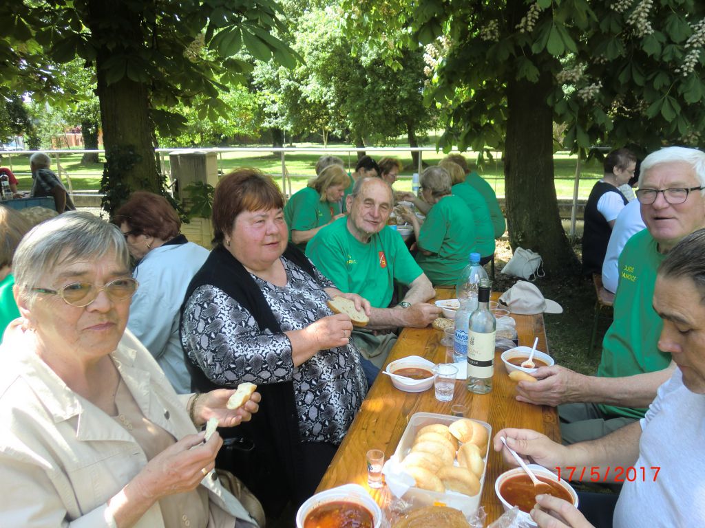 Varenie gulášu – Jaslovské Bohunice (17.05.2017) Stretnutie seniorov okresu Trnava pri netradičnej „súťažnej“ disciplíne vo varení gulášu a výmene kuchárskych zručností zažili aj naši 20 členovia ZO. V krásnom prostredí parku a amfiteátra varilo 14 družstiev. Naše družstvo v zložení Jozefína Selecká, Ernest Lančarič, Oľga Dvoráková, Terka Kučerová, Alena Spálová a Ferdinand Slezák sa zhostilo svojej úlohy veľmi dobre. Komisia ochutnala guláše z kotlíkov, kotlov, ale ten náš nám chutil najlepšie. Všetky ZO boli ocenené diplomom, varechou a darčekmi od OcÚ Jaslovské Bohunice. Vďaka patrí našim členom, ktorí prispeli k tejto peknej akcii i nášmu pánu starostovi za jeho pomoc pri realizácii tohto podujatia. Milé boli stretnutia seniorov so známymi, spolužiakmi, spolupracovníkmi, rodákmi. Vďaka patrí Okresnej organizácii JDS Trnava a ZO J. Bohunice za peknú akciu. Tešíme sa na budúci V. ročník.