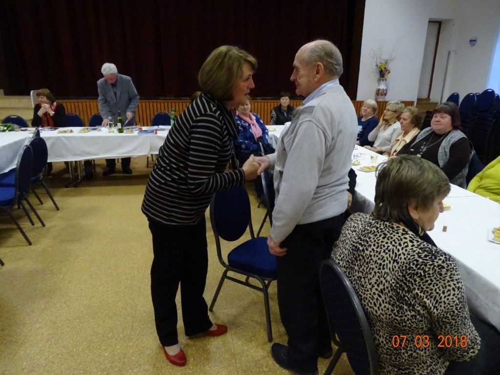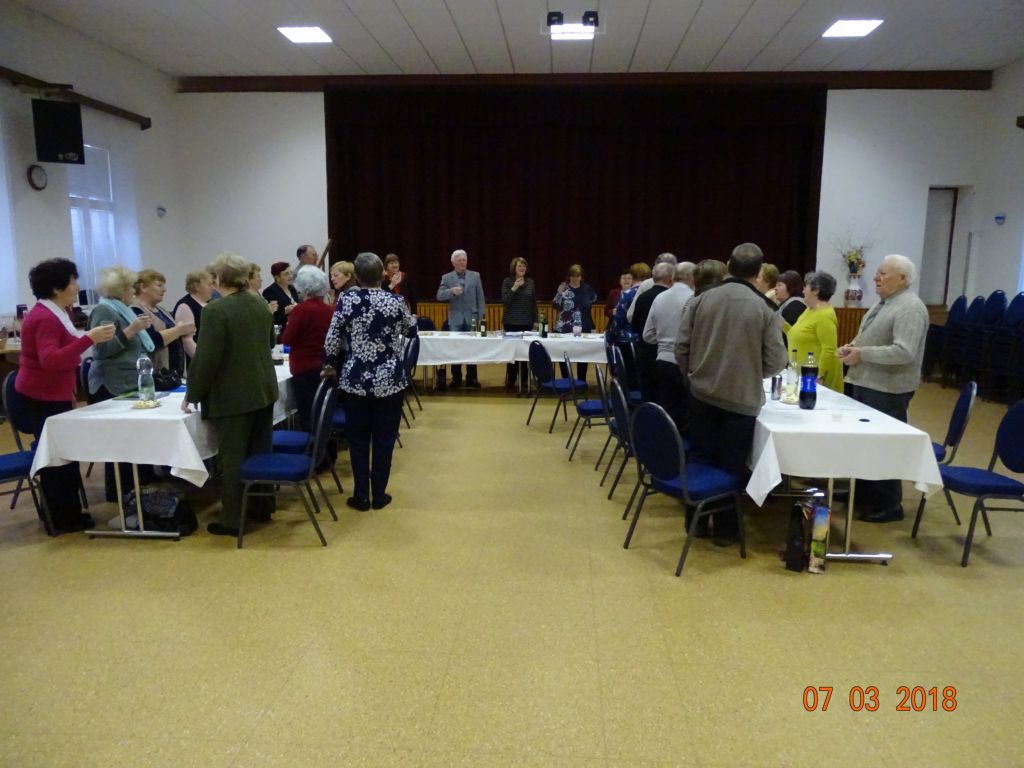 Členská schôdza (07.03.2018) Na marcovom stretnutí členovia zhodnotili realizované akcie a zapojili sa do pripravovaných akcií na mesiac marec a apríl. Zablahoželali jubilantke pani Jozefíne Seleckej, ktorá pre všetkých pripravila výbornú jahodovú tortu a tiež meninovým oslávencom pani Františke, Matilde, Jozefom, Mariánom a Alene. Všetci oslávenci pripravili na posedenie chutné občerstvenie. Členovia si pripomenuli i narodeniny pani Zuzky a pán Erka. V diskusii sa prítomným prihovoril pán Marián Babirát, ktorý ocenil prípravu výletu do Oponíc – prehliadka Áponyovskej knižnice a Guttenbergovej tlačiarne, pani Oľga Jakubcová poďakovala predsedníčke ZO za jej prácu pre seniorov, pani Oľga Martišovičová informovala o pripravovanej akcii „V Bohdanovcách pri pesničke“ a pani Oľga Dvoráková priniesla bohatý propagačný materiál na pripravované výlety do V. Tatier.