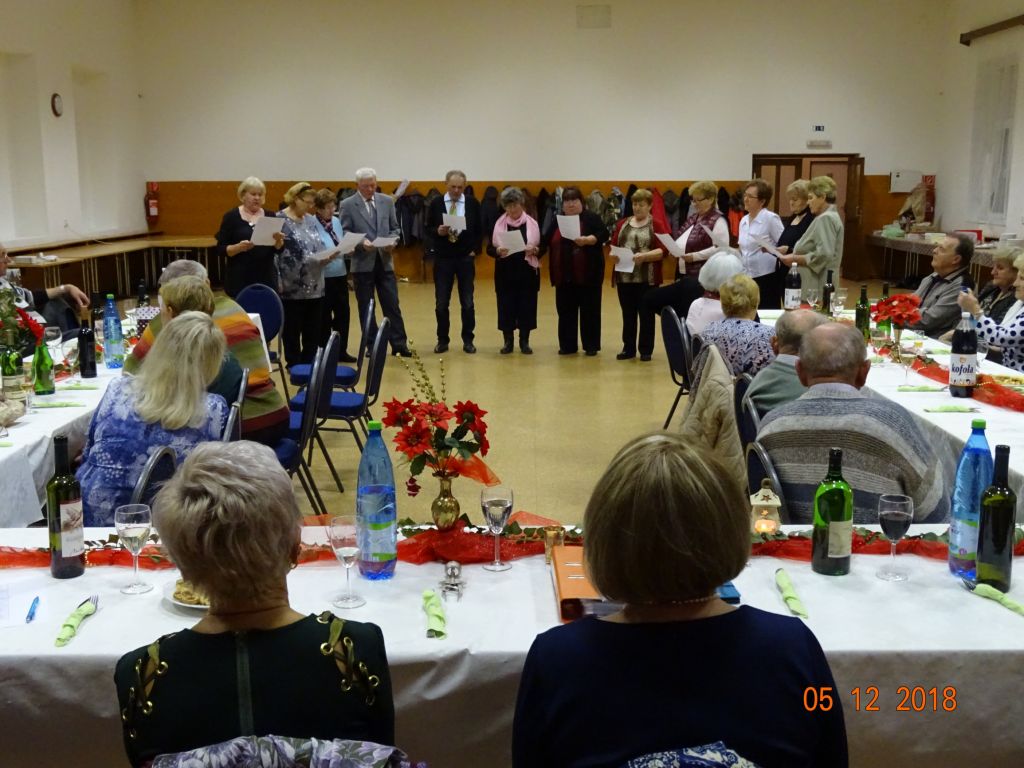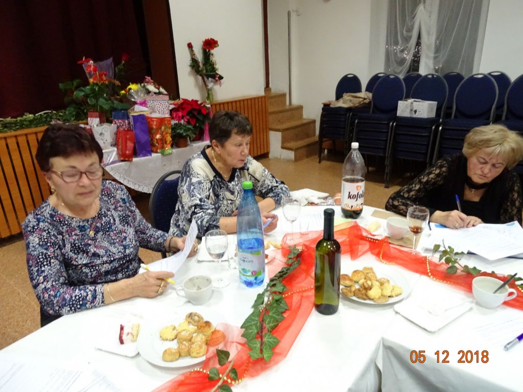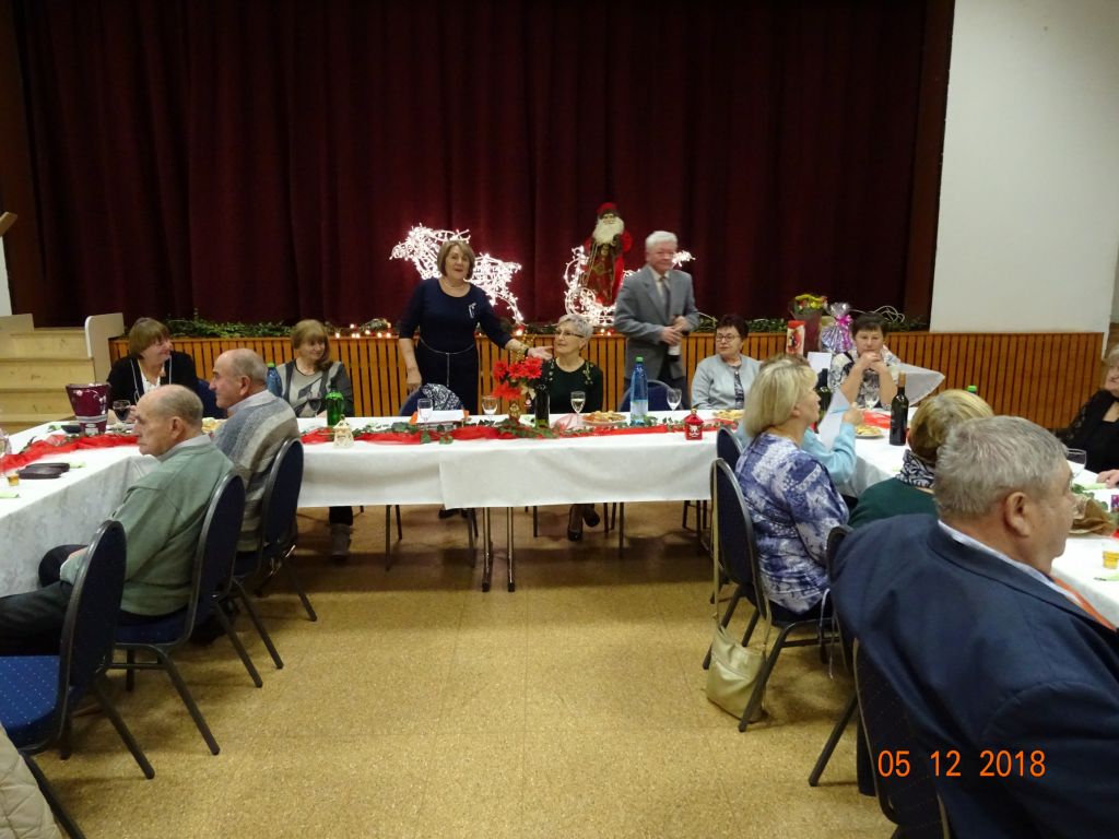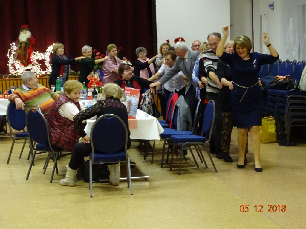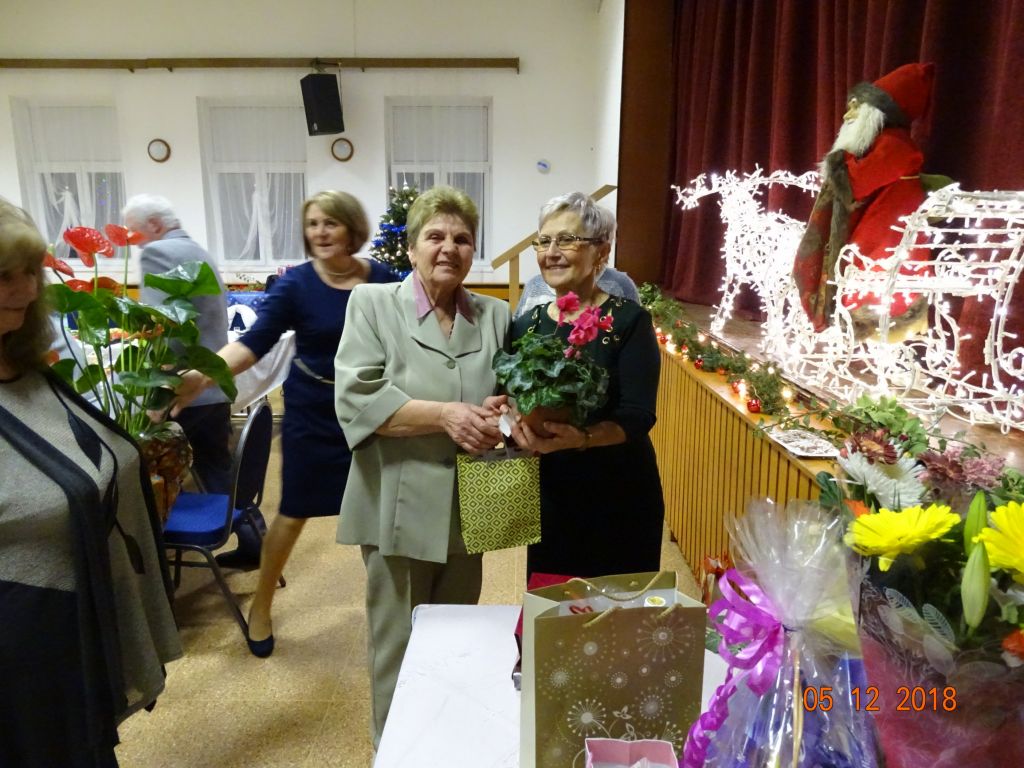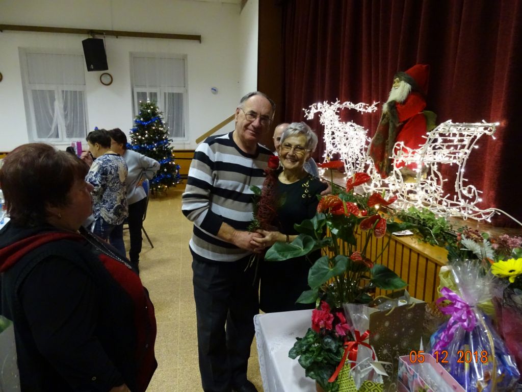 Členská schôdza – Mikuláš, oslava životného jubilea – Nelka Duchoňová (05.12.2018) Naša adventná členská schôdza zhodnotila realizované akcie, predsedníčka pripravila pre členov „mini anketu“ na zhodnotenie činnosti ZO v r. 2018 a návrh aktivít na rok 2019. Zablahoželali sme meninovým oslávencom pani Kornélii (Nelke) a Štefanovi, no najmä k životnému jubileu pani Nelke Duchoňovej. Ku gratulácii predsedníčky ZO sa pripojila i vedúca speváckeho súboru a peknou častuškou speváci potešili nielen oslávenkyňu, ale aj všetkých prítomných. Po chutnej a veľmi výdatnej večeri manželia Pokorní formou tombolových lístkov rozdali mikulášske balíčky. Oslava sa niesla vo výbornej a veselej atmosfére.....veď VEK nie je brzdou života pre toho, kto chce žiť a sa veseliť, brzdou je beznádej a clivota, tie treba rýchlo zapudiť!