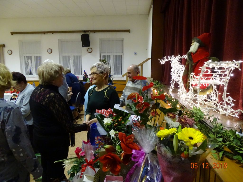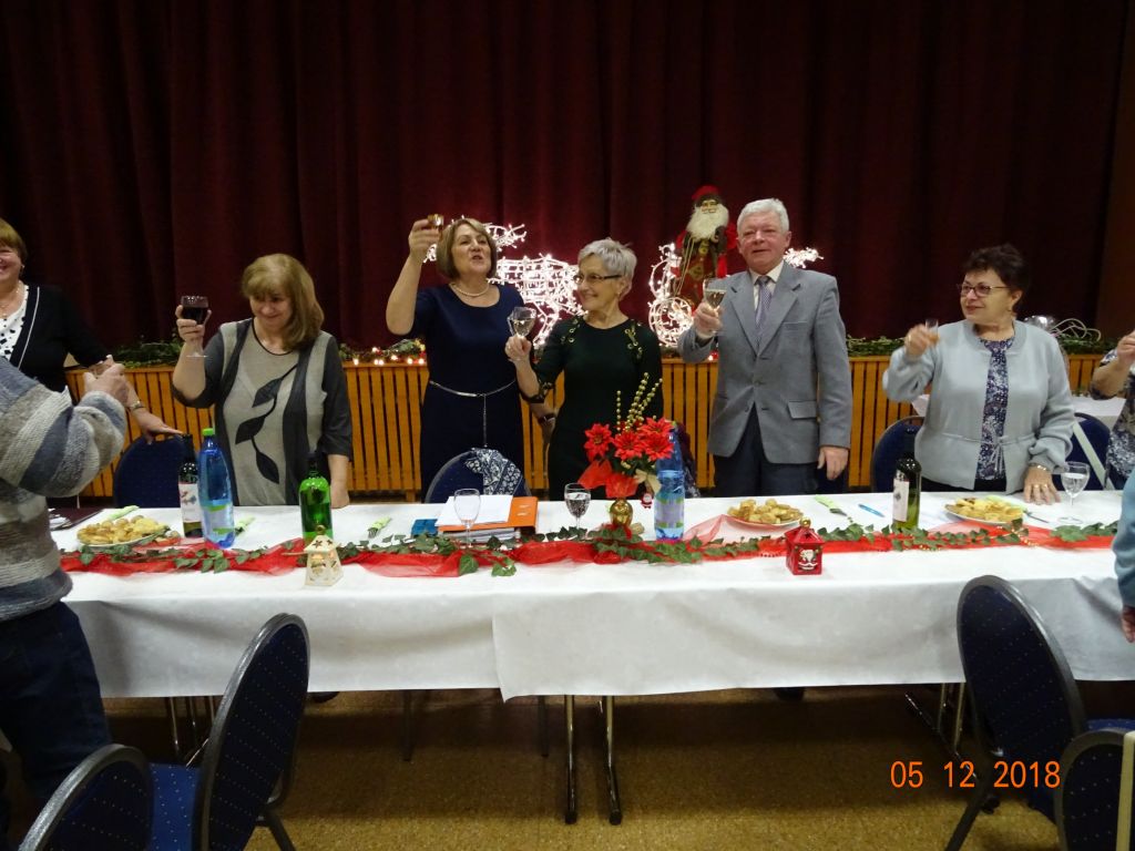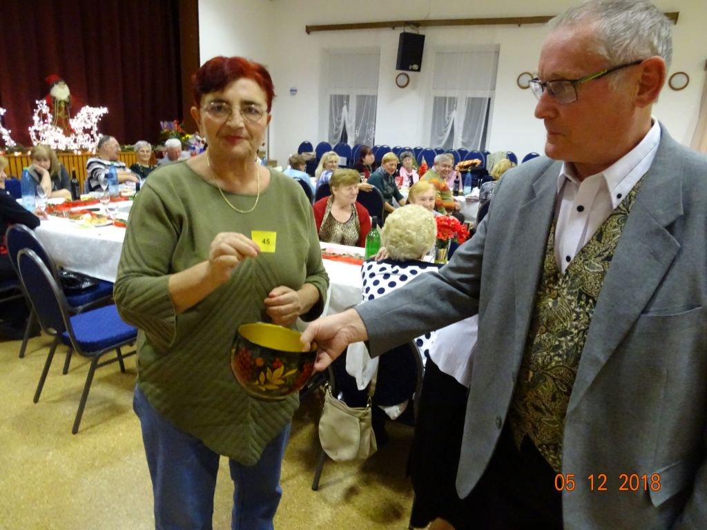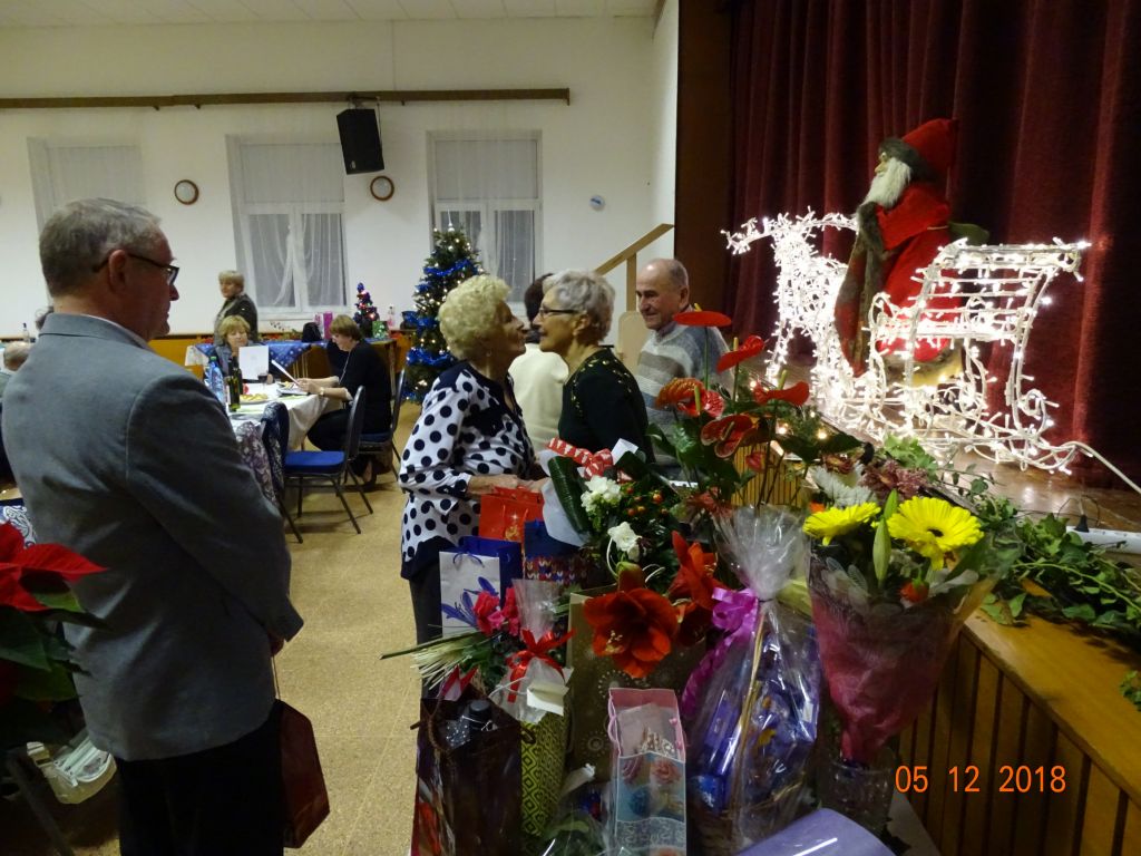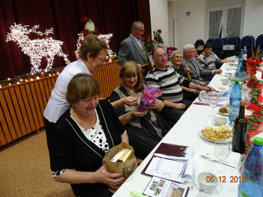 Členská schôdza – Mikuláš, oslava životného jubilea – Nelka Duchoňová (05.12.2018) Naša adventná členská schôdza zhodnotila realizované akcie, predsedníčka pripravila pre členov „mini anketu“ na zhodnotenie činnosti ZO v r. 2018 a návrh aktivít na rok 2019. Zablahoželali sme meninovým oslávencom pani Kornélii (Nelke) a Štefanovi, no najmä k životnému jubileu pani Nelke Duchoňovej. Ku gratulácii predsedníčky ZO sa pripojila i vedúca speváckeho súboru a peknou častuškou speváci potešili nielen oslávenkyňu, ale aj všetkých prítomných. Po chutnej a veľmi výdatnej večeri manželia Pokorní formou tombolových lístkov rozdali mikulášske balíčky. Oslava sa niesla vo výbornej a veselej atmosfére.....veď VEK nie je brzdou života pre toho, kto chce žiť a sa veseliť, brzdou je beznádej a clivota, tie treba rýchlo zapudiť!