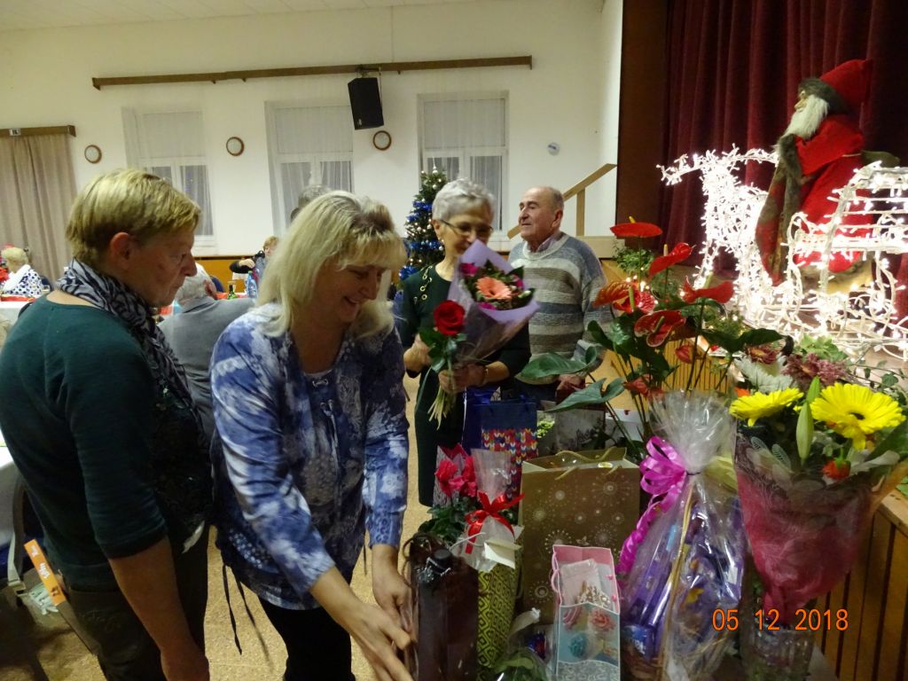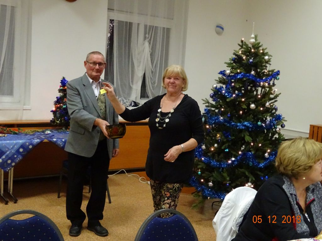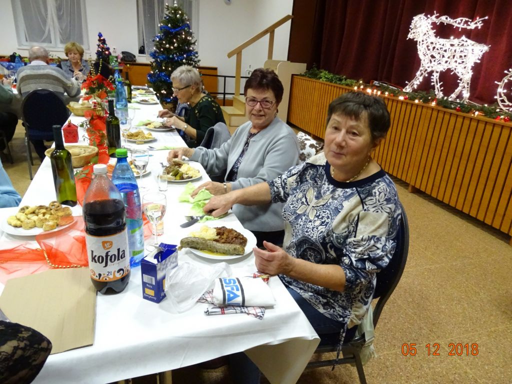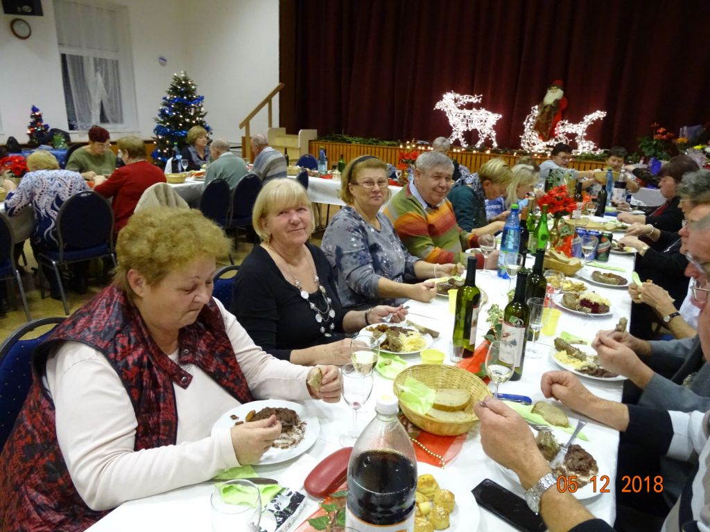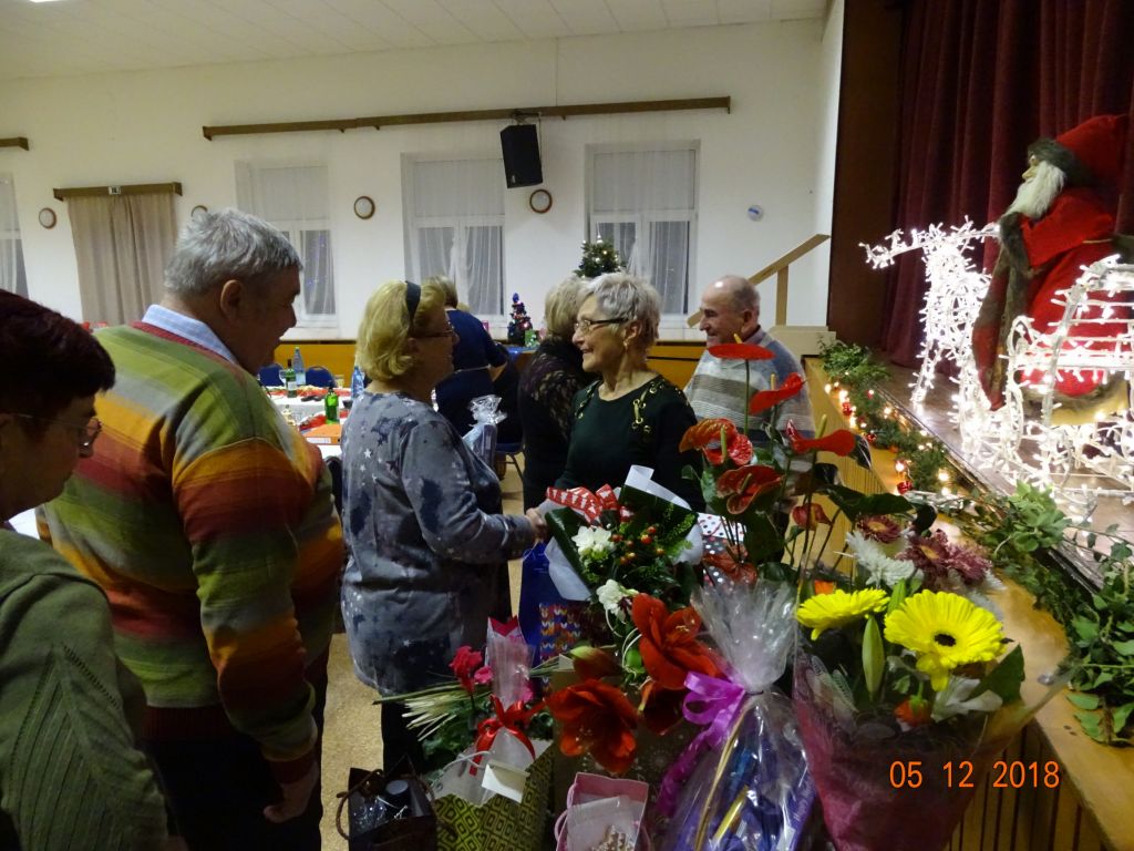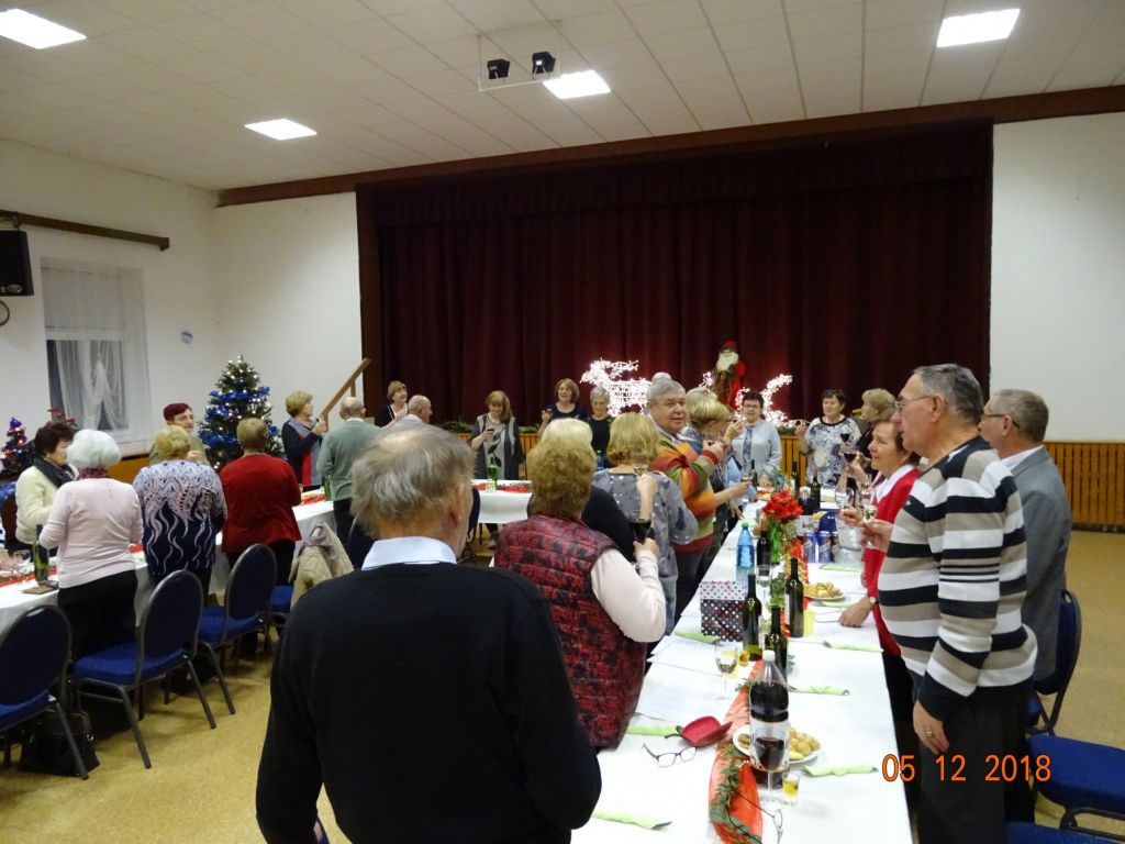 Členská schôdza – Mikuláš, oslava životného jubilea – Nelka Duchoňová (05.12.2018) Naša adventná členská schôdza zhodnotila realizované akcie, predsedníčka pripravila pre členov „mini anketu“ na zhodnotenie činnosti ZO v r. 2018 a návrh aktivít na rok 2019. Zablahoželali sme meninovým oslávencom pani Kornélii (Nelke) a Štefanovi, no najmä k životnému jubileu pani Nelke Duchoňovej. Ku gratulácii predsedníčky ZO sa pripojila i vedúca speváckeho súboru a peknou častuškou speváci potešili nielen oslávenkyňu, ale aj všetkých prítomných. Po chutnej a veľmi výdatnej večeri manželia Pokorní formou tombolových lístkov rozdali mikulášske balíčky. Oslava sa niesla vo výbornej a veselej atmosfére.....veď VEK nie je brzdou života pre toho, kto chce žiť a sa veseliť, brzdou je beznádej a clivota, tie treba rýchlo zapudiť!