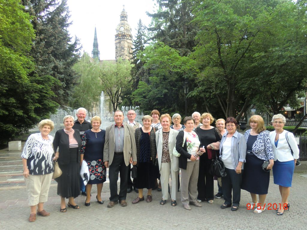 Výlet do Košíc (09.05.2018 – 10.05.2018) Naši členovia (20) sa tentoraz vybrali spoznávať východnú metropolu - mesto Košice. Po chutnom obede ich čakala náročná, ale veľmi zaujímavá prehliadka mesta a Dómu sv. Alžbety so sprievodcom. Po ubytovaní sa v Penzióne Plaza si vychutnali večerné mesto s fontánami a potom krásnu operetu “Grófka Marica” od Emericha Kalmána v štátnom divadle. Známe svieže árie “Joj cigán…” či “Poď so mnou do Varaždína” uchvátili celé publikum. Druhý deň patril prehliadke Východoslovenského múzea, ktoré ukrýva skvost “Košický zlatý poklad” a pozreli si tiež výstavu “Príroda Karpát”. Zastavili sa aj pri soche maratónca, ktorá pripomína návštevníkom na konci Hlavnej ulice najstarší maratón v Európe. Prehliadka mesta Cassovia expres vláčikom umocnila naše dojmy z tohto krásneho mesta. Popoludní sme si vychutnali príjemnú atmosféru mesta v pestrých reštauráciách a kaviarničkach pri spievajúcej fontáne. Cesta vlakom domov ubehla v družnej debate a spomienkach na život. Spokojní a obohatení o nové zážitky budeme spomínať na pekný výlet.