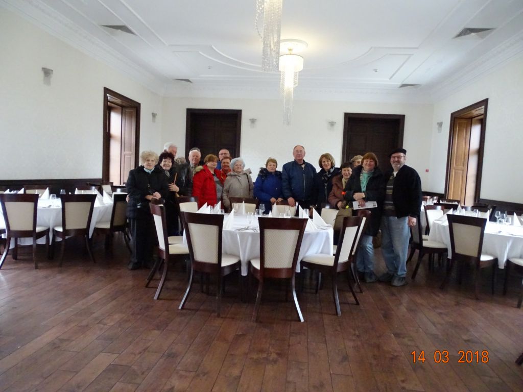 Výlet do Oponíc a Nitry (14.03.2018) Naše prvé zastavenie bolo v kaštieli Áponyiovcov, kde na nás čakala nevšedná výstava a prekvapivo emotívne predstavenie „Gutenbergova knižnica a hviezdy“. Toto predstavenie bolo ohliadnutím sa v čase, ako ľudstvo chápalo vesmír a planéty od čias Ptolemaia a Aristotela, ale pripomenulo aj priekopníkov astronómie. Po predstavení sme mali možnosť vypočuť si históriu knižnice v podaní nášho sprievodu pána Petra Králika, ktorá je t.č. súčasťou hotelového komplexu a je v správe Slovenskej národnej knižnice. Knižnica svojim návštevníkom približuje knižnú históriu v doposiaľ nepoznaných rozmeroch a dýcha vôňou zašlých stáročí. Ďalšie zastavenie bolo v Poľovníckom zámočku, ktorý ukrýva na prízemí artefakty z 2. svetovej vojny, ale aj tzv. „technické fetiše“ z 20. storočia, pri ktorých si naši členovia zaspomínali, ktoré z nich mali tiež doma. Poschodie zámočka v sebe ukrýva bohatú históriu rodu Áponyi v tejto dedine. Sprievodkyňa zámočkom svojim fundovaným výkladom zaujala všetkých a vyjadrila svoj obdiv za náš záujem o históriu v tejto lokalite. Po dobrom obede v Lefantovciach sme sa potešili výhľadom na drobný kostolík v Dražovciach a vypočuli sme si jeho históriu v podaní nášho sprievodcu na ceste pána Mariána Babiráta. Potom sme ešte navštívili Slovenské poľnohospodárske múzeum v Nitre, ktorého celková plocha areálu má viac ako 30 hektárov, a my sme si prezreli expozície: Najstaršie dejiny poľnohospodárstva, Tradičné remeslá a spracovateľstvo, Poľnohospodárske stroje a letectvo, Ochrana roľníckej usadlosti pred požiarom. Okrem toho na nádvoriach sú vystavené staré traktory, kombajny, mláťačky, rajtáre, motory, turbíny..... ozaj bolo načo pozerať. Unavení, ale obohatení o nové poznatky z našich dejín sme sa vrátili domov.