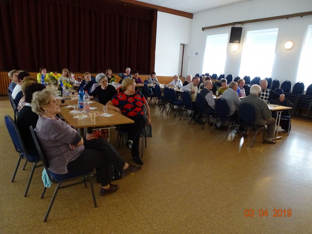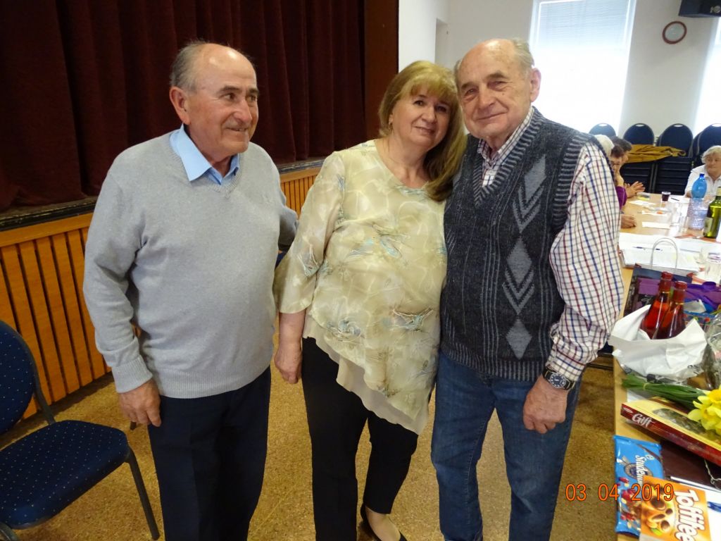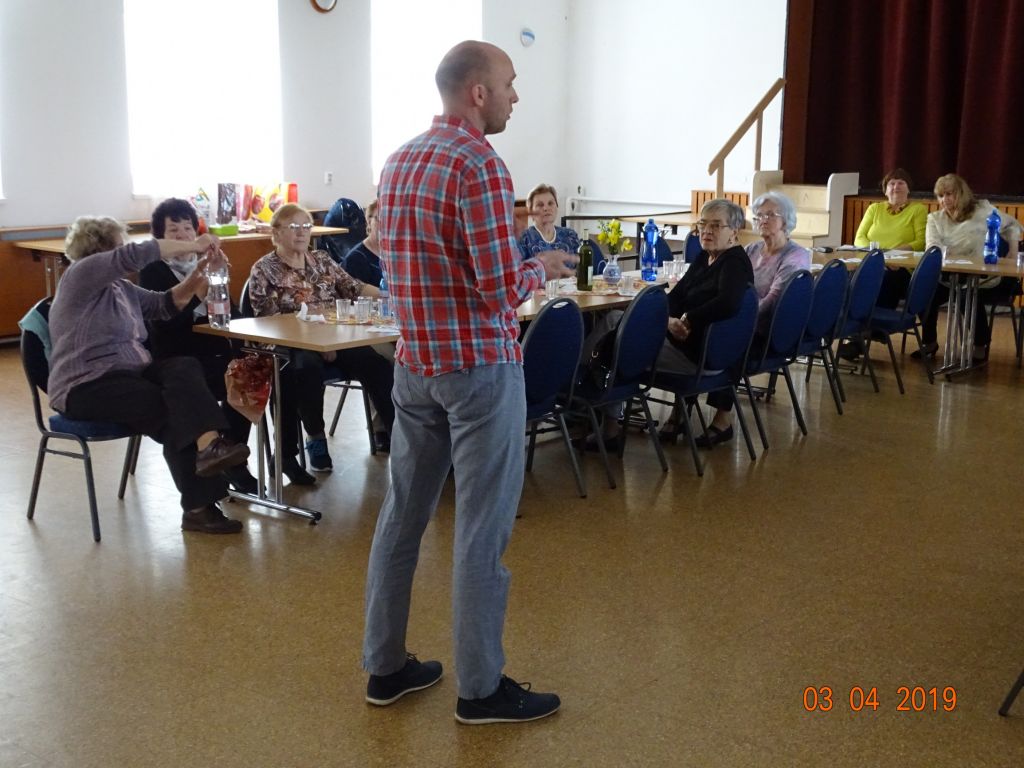Členská schôdza (03.04.2019) Na aprílovú členskú schôdzu prijal pozvanie pán Mgr. Michal Rafajdus, PhD. z Trnavskej univerzity, odborný asistent zaoberajúci sa problematikou posturológie a správnych pohybových návykov. Zastrešuje odbornú poradňu zdravia katedry verejného zdravotníctva. So svojimi skúsenosťami sa podelil i s našimi seniormi, ukázal nám praktické techniky pohybu, vysvetlil dôležité aktivity pre výživu, pohyb a sociálno-psychologické procesy. Po gratulácii našej aprílovej oslávenkyni pani Irenke a pani Jarmile (nebola prítomná), zavítali medzi nás veliteľ DHZ Bohdanovce n/T pán Boris Janto a člen HZ pán Matej Šarvaic. Pútavým výkladom zaujali prítomných členov ZO, upozornili na preventívne činnosti, na predchádzanie vzniku požiarov a mimoriadnych udalostí, ktoré sa môžu vyskytnúť v našich domácnostiach. Po ich zaujímavej prezentácii mali možnosť naši členovia si zmerať tlak a glykémiu, ktoré zrealizovala pani Terézia Kučerová. Tí, čo mali nízku hladinu cukru, mohli si dopriať chutné krémeše….a pochutiť si na občerstvení, ktoré pripravili obetavé členky našej ZO.