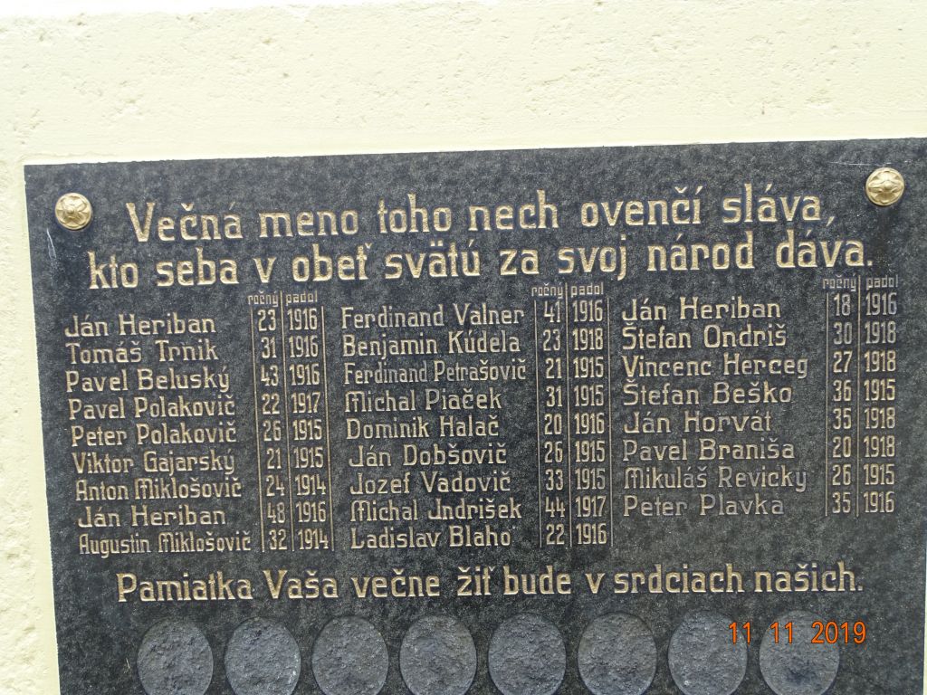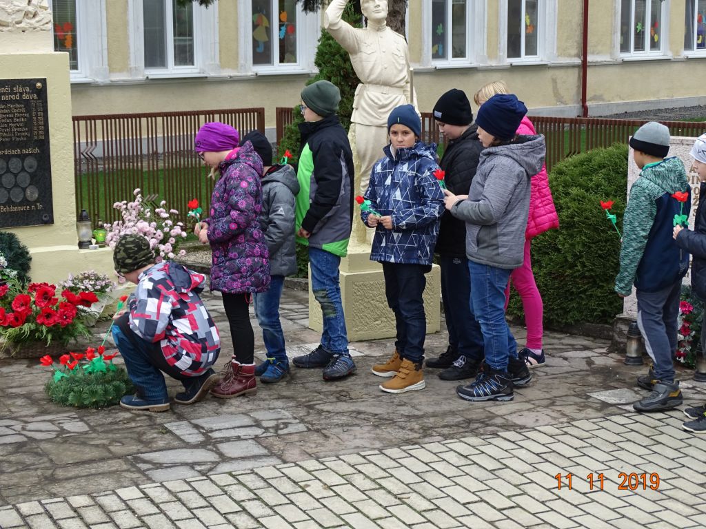 Spomienka na koniec 1. svetovej vojny – Deň červených makov (11.11.2019) V tento deň o 11 hodine a 11 minúte si naši občania a žiaci ZŠ s MŠ uctili pamiatku tých, ktorí položili svoje životy v ozbrojených konfliktoch, bez rozdielu či patrili k víťazným alebo porazeným armádam. Symbolom spomienky sú červené maky, ktoré žiaci pripravili a uvili do venčeka, symbolické bolo aj zvonenie z nášho kostola, ktoré sa pripojilo k zvonom mieru vo svete, ďalším symbolom bolo zapálenie sviečok, ktoré zasvietili na pamiatku 26 padlých občanov v prvej svetovej vojne a 2 občanov v druhej svetovej vojne. Žiaci základnej školy dojímavo zarecitovali báseň Johna Mc Crae „Na flámskych poliach“, mená všetkých padlých prečítala pani Mária Pokorná. Počas pietnej spomienky sa prítomní pomodlili s pánom farárom modlitbu za všetkých padlých vo vojnových konfliktoch. Členovia súboru Bohdanovčan zaspievali hymnickú pieseň Kto za pravdu horí. Za ZO JDS poďakovala všetkým prítomným predsedníčka ZO, zdôraznila najmä deťom, aby si pripomínali hrdinstvo svojich predkov pre našu slobodu. Milé bolo malé posedenie v hasičskej zbrojnici, kde pán Boris Janto oboznámil účastníkov pietnej spomienky s ďalšími historickými faktami z obdobia 1. sv. vojny. Ďakujeme všetkým, ktorí sa podieľali na tejto pietnej spomienke. NEZABÚDAJME.
