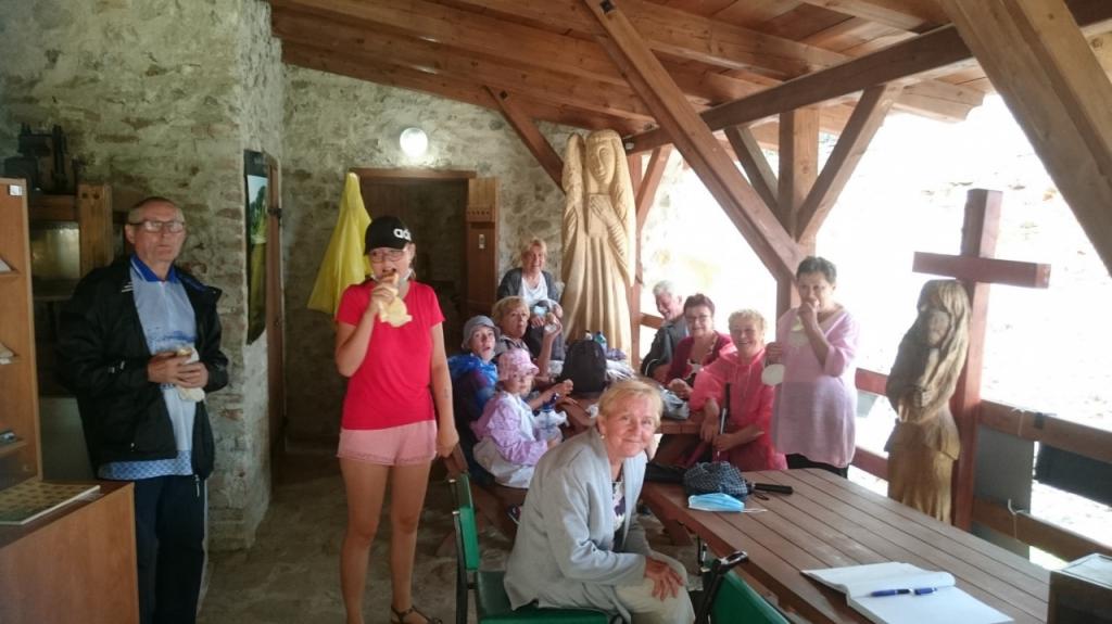 Výlet vlakom do Trenčína (14.07.2021) I keď nám počasie neprialo, cestou vlakom sme zažili silnú búrku, ale potom sme v pohode taxikmi zašli na prvé pútnické miesto na Slovensku – Skalku nad Váhom. Práve tu sú zachované artefakty našich svätcov pustovníkov Svorada-vyznavača a Benedikta-mučeníka ešte z 11.storočia. Zaujímavý výklad sprievodkyne o histórii tohto pútnického miesta nám umožnil vidieť život a odriekanie týchto svätých mužov. Po cyklistickej ceste sme sa chceli dostať do kostolíka na Malej Skalke, ale..... po veľkom lejaku nebolo možné bez úrazu vyliezť na skalisko... tu sme sa pekne iba odfotili. Príjemná bola cesta vláčikom cez lesopark Brezina až ku hradu, kde sme mali možnosť vidieť opravené opevnenia, ale aj nové expozície na hrade. Tí odvážnejší vystúpili až do Matúšovej veže, tí menej zdatní si pozreli Barborin palác zvonku a známu Omarovu studňu lásky. Unavení, ale obohatení o zážitky sme sa vrátili v príjemne vychladenom REX vlaku domov.