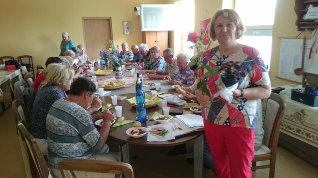 Členská schôdza (08.06.2022) Naše júnové stretnutie sme posunuli o týždeň, nakoľko sme boli hneď začiatkom júna variť guláš v Naháči. Naše šikovné členky pripravili na posedenie „ukrajinské vajcia“, ktoré chutili všetkým. Zhodnotili sme realizované akcie v uplynulom období, prihlásili sa na pripravený turistický pochod Bielymi Karpatmi, ale aj na pobyt v Oravskej horárni. V diskusii odzneli spomienky zo stretnutí, ale aj pripomienky na nové akcie. Pani Oľga Martišovičová v mene všetkých členov našej ZO poďakovala predsedníčke Márii Tomekovej za jej prácu, ktorú už toľké roky vykonáva pre seniorov z našej obce a zablahoželala jej i k narodeninám. Spoločne sme si zaspievali a potešili sa zo vzájomného stretnutia.