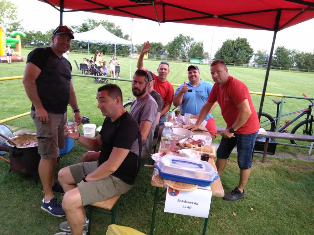 Bohdanovský kotlík 2023 – Ukončenie leta v Bohdanovciach (02.09.2023) Už štvrtýkrát sme sa zapojili do varenia gulášu a užili sme si pekný deň na koniec leta. Pekne vyzdobený športový areál privítal 10 skupín na varenie gulášu. Naši skvelí kuchári pripravili kvalitné mäsko, ochotní členovia pridali potrebné ingrediencie a v našom novom kotlíku uvarili ozajstnú gulášovú pochúťku. Ochutnali nielen naši členovia, ale aj ďalší, ktorí sa k nám prikmotrili. Šikovné gazdinky-seniorky napiekli tradičné báleše, moravské koláče, slané pagáče, sladké koláčiky. V našom pekne vyzdobenom „stane“ sme si vychutnali kultúrny program, futbalové strielačky, skvelú tombolu (aj my sme niekoľko cien vyhrali) a až do večerných hodín posedeli v kruhu blízkych. Ďakujeme obecnému úradu za skvelú akciu a všetkým našim členom za ochotu a podporu tohto príjemného posedenia.