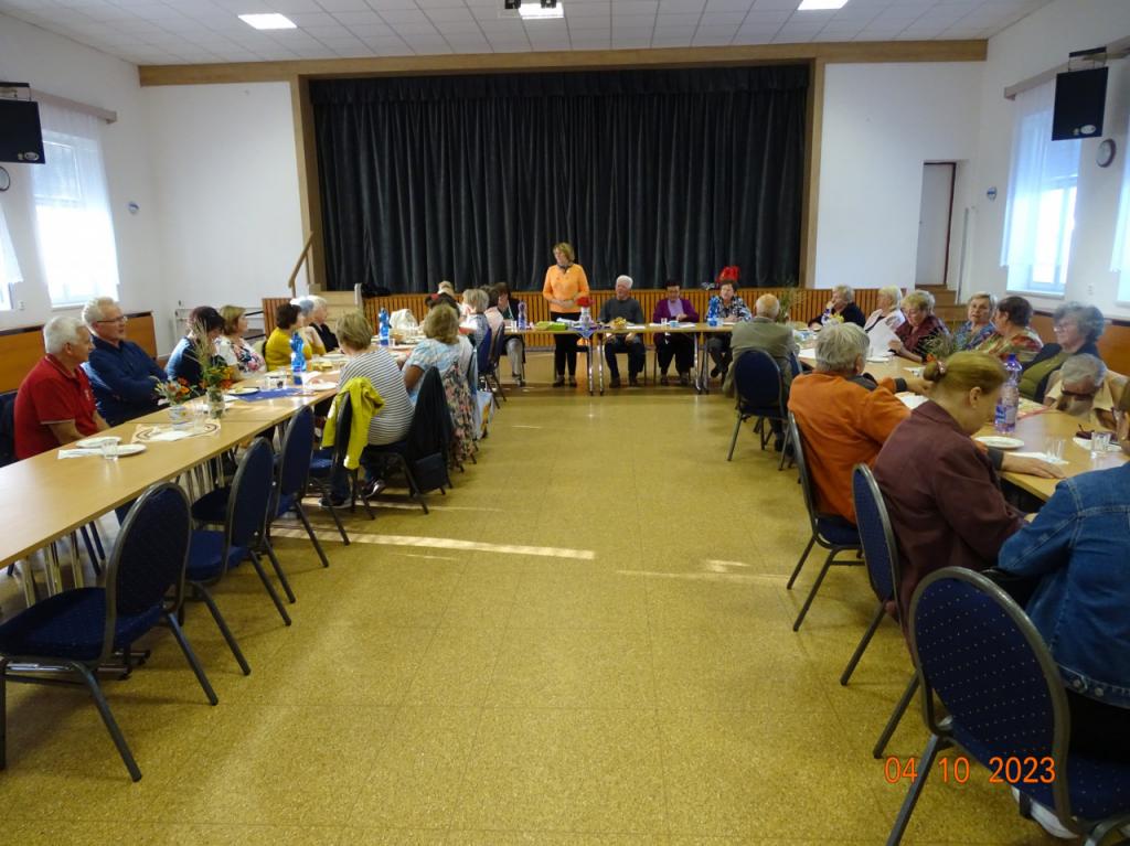 Členská schôdza (04.10.2023) – spoločne sme zablahoželali našim členkám Vierkam a Terézii, ktoré na dnešné stretnutie pripravili aj chutné občerstvenie pre všetkých prítomných. Zhodnotili sme všetky zrealizované akcie a aj tie, čo sa neuskutočnili. Oboznámili sme sa s pripravovanými akciami na jesenné obdobie. Informácie o digitálnom vzdelávaní seniorov, ktoré bolo v trnavskej knižnici, podali účastníčky tohto podujatia. My, seniori vítame takúto starostlivosť, len v trochu inej forme a v užšom kruhu. Naša dvorná sestrička Terka zmerala záujemcom niektoré vitálne funkcie (hladinu cukru, tlak). Sme radi, že sa stretávame, lebo sympatie a priateľstvo sú zdrojom a korením života.