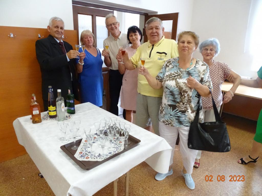 Členská schôdza – oslava životného jubilea Vladimír Mikula (02.08.2023) – augustová členská schôdza bola slávnostná. Poďakovanie patrí všetkým členom ZO, ktorí pripravili a krásne vyzdobili sálu KD pre dnešné slávnostné posedenie. Na začiatku sme zablahoželali meninovým oslávencom – Jozefíne, Zuzane, Ľubomírovi, Elene a Ľudovítovi a odovzdali im darčeky v mene všetkých členov ZO. Potom sme zablahoželali nášmu jubilantovi pánovi Vladimírovi Mikulovi k jeho okrúhlym narodeninám a ku gratulácii sa pripojili všetci seniori.Zablahoželali sme aj našim 2 členkám, ktoré tento mesiac dovřšia 75. narodeniny - Anka Koleňáková a Gabika Dienerová. Po chutnej večeri sme však nezabudli zhodnotiť aj naše aktivity a dozvedeli sme sa informácie o ďalších prázdninových akciách. Potom už bolo príjemné veselie pri skvelej muzike, ktorú nám sprostredkoval pán Ľubomír Tomek. Ďakujeme všetkým seniorom, ktorí prispeli k tejto úžasnej atmosfére.