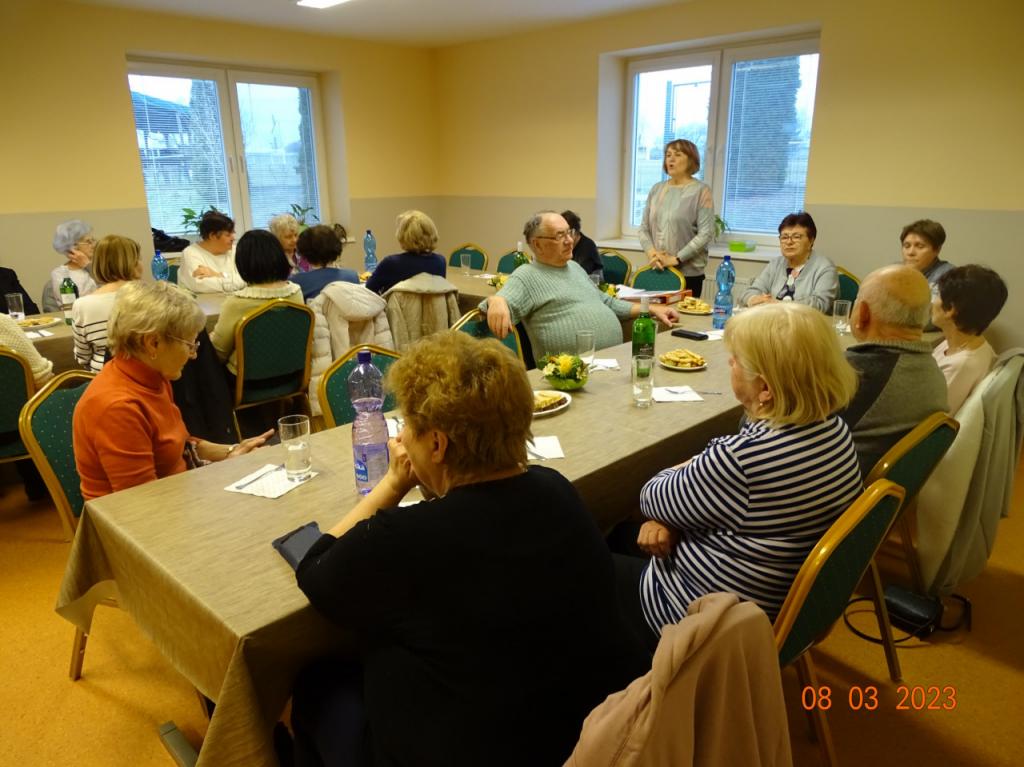 Naši členovia potešili ženy kytičkou kvetov a potom sme zablahoželali tiež marcovým meninovým oslávencom - Matilde, Jozefom, Mariánom, Alene a Miroslavovi, oboznámili sme sa s významom ich mena a tí, čo sa nemohli dostaviť boli ospravedlnení. Vyhodnotili sme realizované akcie a pripravili ďalšie na najbližšie obdobie. Privítali sme aj nových členov nášho Seniorklubu. Vďaka za príjemné spoločenské stretnutie patrí všetkým, ktorí priniesli slané i sladké dobroty. Pani Oľga Dvoráková dokonca potešila všetkých svojimi krásne zdobenými veľkonočnými medovníčkami.