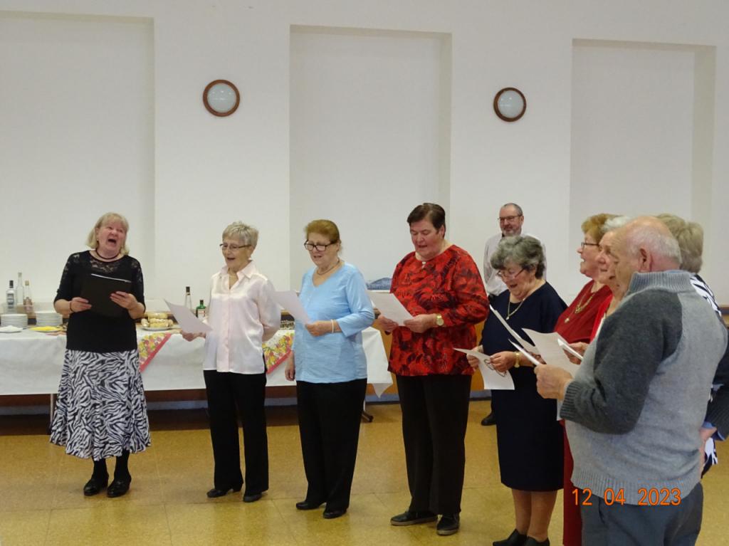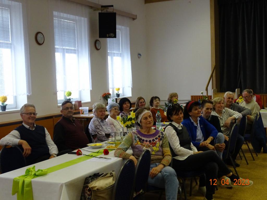Členská schôdza – oslava životného jubilea Jozefína Selecká (12.04.2023) – naša aprílová členská schôdza bola v pekne vyzdobenej sále kultúrneho domu, nakoľko sme sa chystali aj na milú oslavu. Najprv sme zhodnotili realizované akcie a oboznámili sme sa s pripravenými aktivitami na mesiac apríl a máj. Naše stretnutie pozdravil aj pán starosta Ivan Bočko. Poďakoval našim členom za aktívnu účasť na brigáde pri čistení obce a vyjadril nádej na ďalšiu peknú spoluprácu s ostatnými organizáciami v obci. Zablahoželali sme aj meninovým oslávenkyniam Irenkám. Práve toto stretnutie bolo príležitosťou, aby sme spoločne oslávili životné jubileum 80 rokov našej členky pani Jozefíny Seleckej. Predsedníčka našej základnej organizácie pani Mária Tomeková po peknej gratulácii jubilantke odovzdala ďakovný list za jej dlhoročnú angažovanú prácu v našej ZO a hudobný doprovod na ozembuchu v speváckej skupine Bohdanovčan. Vedúca speváckeho súboru pani Oľga Martišovičová zložila pre našu oslávenkyňu vtipnú častušku, ktorá odznela v podaní členov súboru. Ku gratulácii sa pripojili všetci prítomní seniori a potom nasledovalo veselé posedenie spojené i s tancom za hudobného doprovodu nášho muzikanta Ľubka Tomeka. Pochutili sme si na dobrom gulášiku a koláčikoch. Ďakujeme všetkým, ktorí prispeli k skvelej atmosfére na našom aprílovom stretnutí.