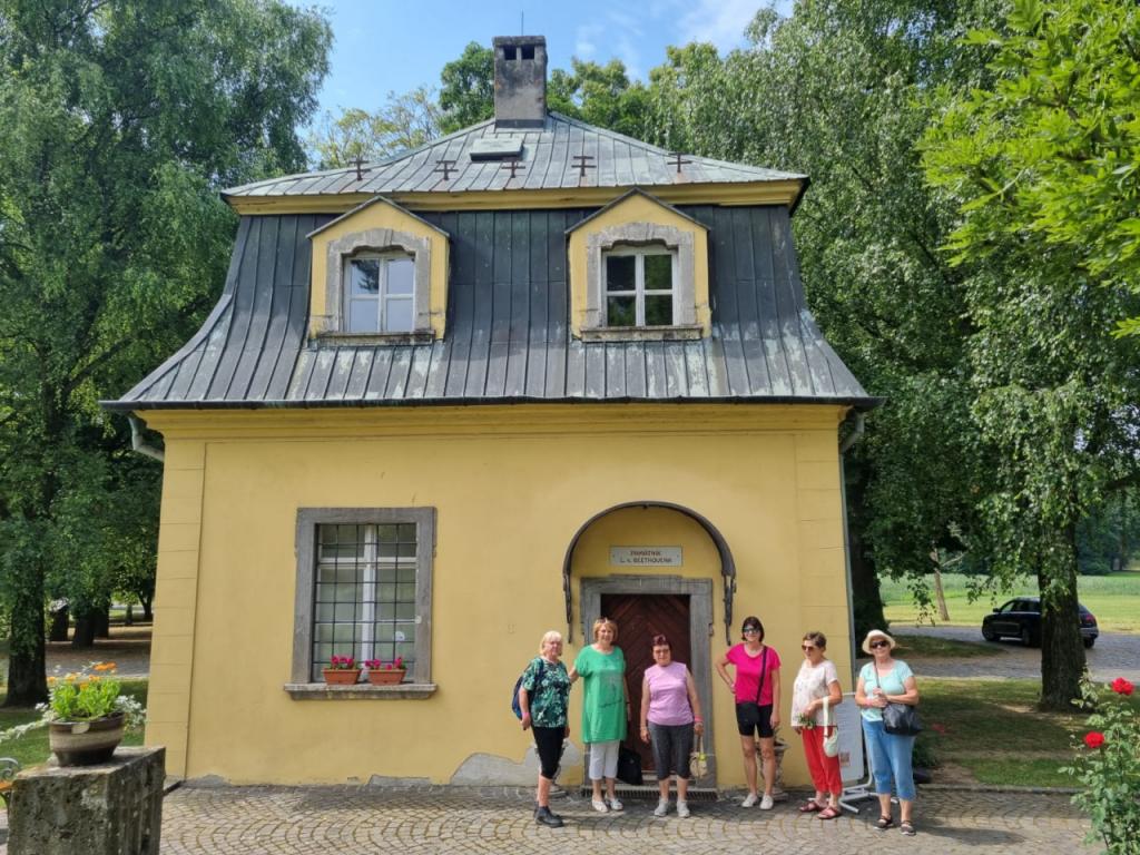 Návšteva Rozária v Dolnej Krupej (21.06.2023) – tentoraz sme sa vybrali do Dolnej Krupej, kde má ružiarska tradícia silné korene. V najväčšej miere sa o to zaslúžila Grófka Mária Henrieta Choteková žijúca v rokoch 1863-1946 v kaštieli, ktorého park priamo susedí s areálom Medolandia. Práve ona bola veľkou inšpiráciou pri budovaní rozária a na jej pamiatku pomenovali Reštauráciu Mária Henrieta či Salónik ružovej grófky. Práve tu, len niekoľko metrov od miesta pôvodnej grófkinej záhrady vysadili viac než 1000 ruží. Jednou z nich je aj Rosengräfin Marie Henriette (Ružová grófka Mária Henrieta. Lupienky z tejto nezvyčajne krásnej a voňavej ruže používajú pri výrobe medoviny Mária Henrieta. Aj my sme sa pokochali nádherou tisícky ruží a príjemná bola i prechádzka krásnym parkom. Na polceste pri prechádzke sme našli netradičný unikát v našich podnebných končinách - strom sekvojovec mamutí a tiež umelú jaskyňu. Krupský kaštieľ je jedinečné dielo klasicistickej vidieckej architektúry na území Slovenska, bol sídlom rodiny Brunsvik – neskôr (po praslici) Chotek. Kaštieľ v minulosti hostil uhorskú i európsku smotánku. Pobýval tu aj významný umelec Ludwig van Beethoven, ktorý mladé dámy z rodiny Brunsvikovcov vyučoval hre na klavíri. Azda najvýraznejšou osobnosťou žijúcou v kaštieli bola Mária Henrieta Choteková, prezývaná aj ako Ružová grófka. Ambiciózna žena vybudovala na území Dolnej Krupej najväčšie rozárium v Strednej Európe. Kaštieľ je toho času v rekonštrukcii, možno sa dožijeme aj jeho obnovenia.