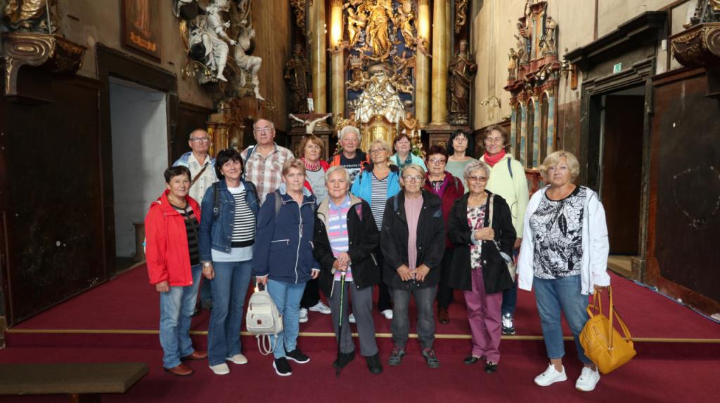 Výlet vlakom do Malaciek (09.08.2023) – i keď nám počasie zrána veľmi neprialo, naša ohlásená návšteva v Kostole Nepoškvrneného počatia Panny Márie v Malackách dopadla nad naše očakávania. Našim cieľom bolo prezrieť si tento kostol v ktorom je pútnická kaplnka Svätých schodov. Hovorí sa že sú na svete len troje – v Ríme sa nachádzajú pôvodné, po ktorých kráčal Ježiš do Pilátovej siene, kópie sa nachádzajú v Jeruzaleme a v Malackách. Zaujímavé informácie sme sa dozvedeli od pána dekana, ktorý nám sprístupnil i ďalšie pozoruhodné miesta v tomto františkánskom kostole. Spoločne sme sa pomodlili a mali sme čas aj na individuálne rozjímanie. Po návšteve kostola nás čakal pán sprievodca, ktorý nám sprístupnil krypty, ktoré boli súčasťou kláštora. Sú v nich uložené ostatky Pálffyovcov, ale aj františkánov a svetských osôb. Po prehliadke sme sa prešli mestom do mestského parku, kde nás v Zámockej reštaurácii čakal pripravený obed, na ktorom sme si všetci pochutili. Po obede sme mali ešte prehliadku Pálffyovského kaštieľa. Vtipný pán sprievodca nám najprv ukázal zrekonštruovanú časť kaštieľa, a prezreli sme si aj miesta, ktoré na rekonštrukciu ešte čakajú, nakoľko v kaštieli bola v posledných rokoch nemocnica. Dojímavá bola prehliadka Kaplnky Svätého kríža, ktorá bola necitlivo rozdelená na viac miestností, raritou však je, že pred hlavný oltár postavili stenu, aby ho zakryla, čím ho vlastne niekto zachránil. Opäť sme sa presvedčili, že v našom okolí máme stále čo objavovať.