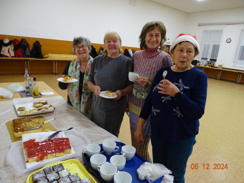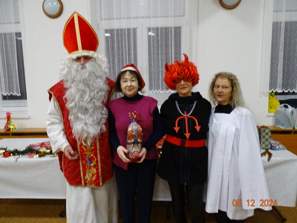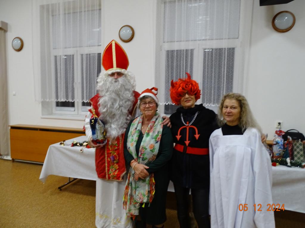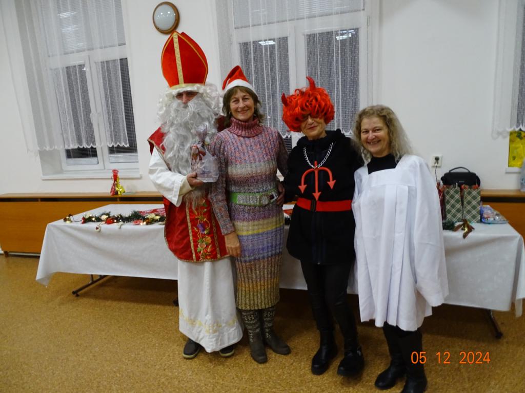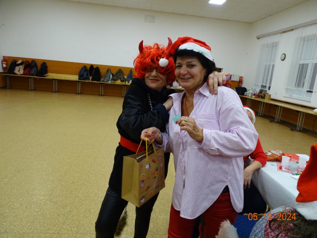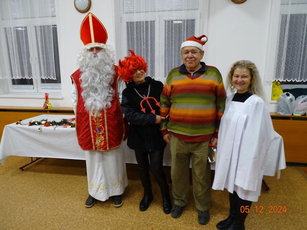 Mikulášske posedenie (05.12.2024) – posledná členská schôdza bola zhodnotením aktivít v uplynulom mesiaci, členovia boli oboznámení s pestrými akciami v decembri, a po chutnej večeri sme ešte zablahoželali meninovým oslávencom Kornélii a Štefanovi. Potom medzi nás zavítal vtipný Mikuláš s anjelom aj čertom, ktorí rozdali pripravenú pestrú nádielku darčekov. Poďakovanie patrí všetkým členom za darčeky, ktorými sme sa potešili navzájom, ale aj chutné občerstvenie – jatrničky, varené vínko, koláčiky, pagáčiky.