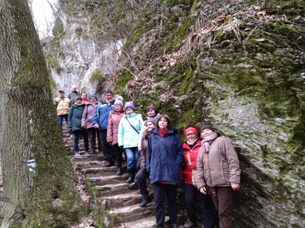 Turistická vychádzka Smolenice – Hlboča (17.01.2024) pekné zimné počasie prialo našej vychádzke do doliny Hlboča. Vďaka patrí vodičom áut: Ľudovítovi, Vladimírovi, Zuzane a Márii, ktorí priviezli našich 14 členov do Smoleníc. V družnej debate sme sa dostali k zamrznutému vodopádu a ku kaplnke Panny Márie, kde sme spoločne poďakovali za našich seniorov. Cesta pokračovala smerom na Molpír, okolo hrobky Pálfyovcov, kde nás upútali 4 sochy mníchov, ktorých sem premiestnili z kláštora Katarínka. Prešli sme sa obcou na naše parkovisko a potom sme si vychutnali objednaný obed v reštaurácii U sedliaka.