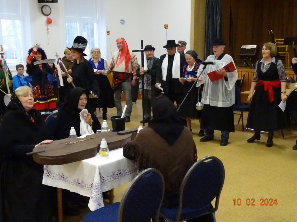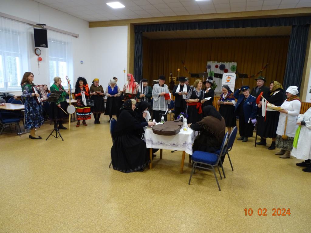 Pochovanie basy – obecná zabíjačka (10.02.2024) – šikovní kuchári-mäsiari pripravovali zabíjačkové špeciality pár dní pred sobotou, kedy si naši občania mali možnosť zakúpiť tieto dobroty. Ale ani naši seniori nezaháľali, ochotne nacvičovali program na pochovávanie basy. Aj naše gazdinky usmažili šišky, fánky, upiekli skvelé koláče i pagáče, ktoré chutili i našim hosťom – Krupanským črpákom. Veselé, no najmä vtipné pásmo pobavilo všetkých, ktorí prišli do kultúrneho domu. Vďaka patrí všetkým účinkujúcim, ktorí neváhali obetovať čas na prípravu a vystúpenie pred publikom. Možno o rok sa pridajú i ďalší, dúfame, že mladší, aby sa tradícia ukončenia fašiangov udržala aj v našej obci.