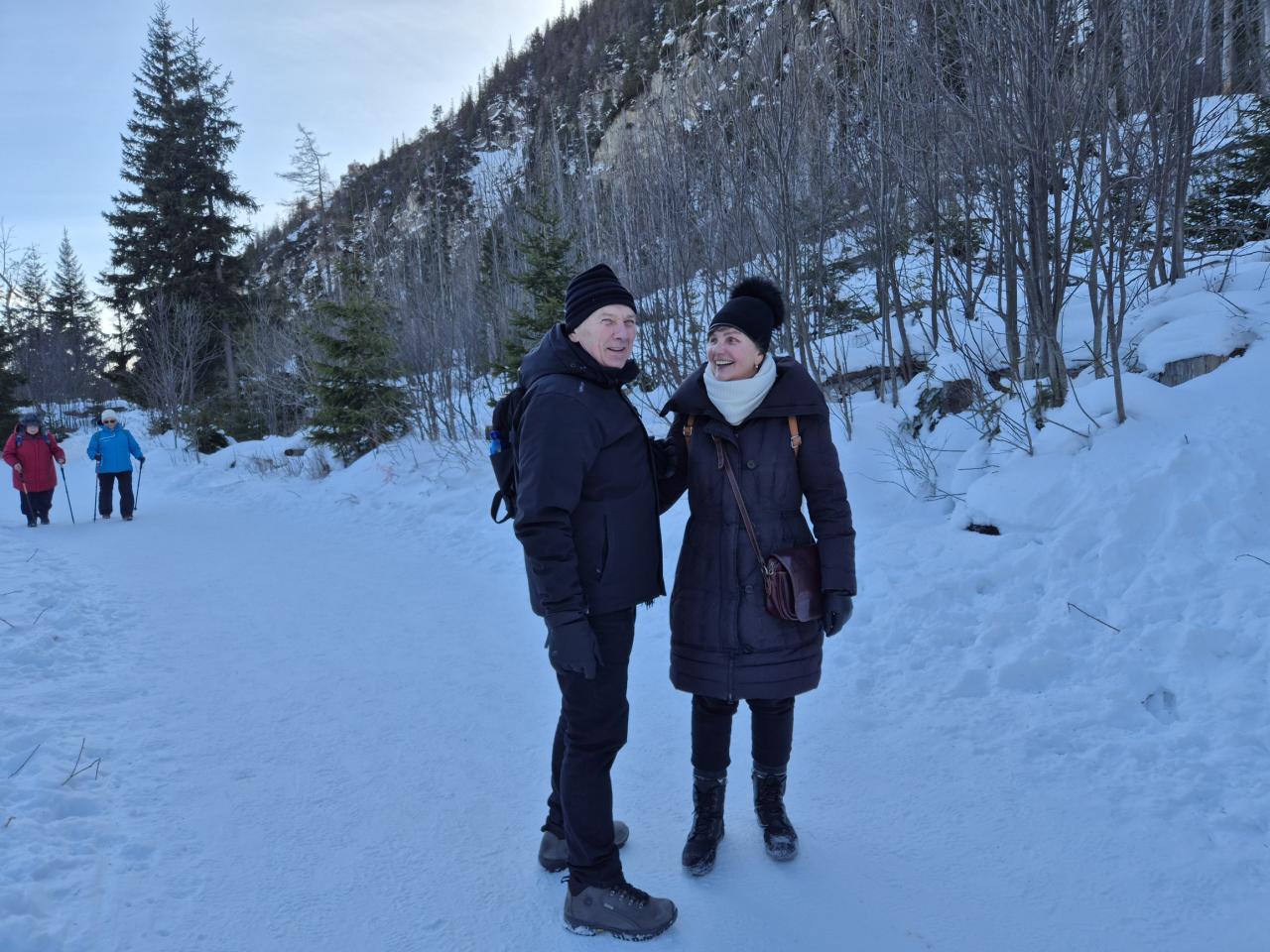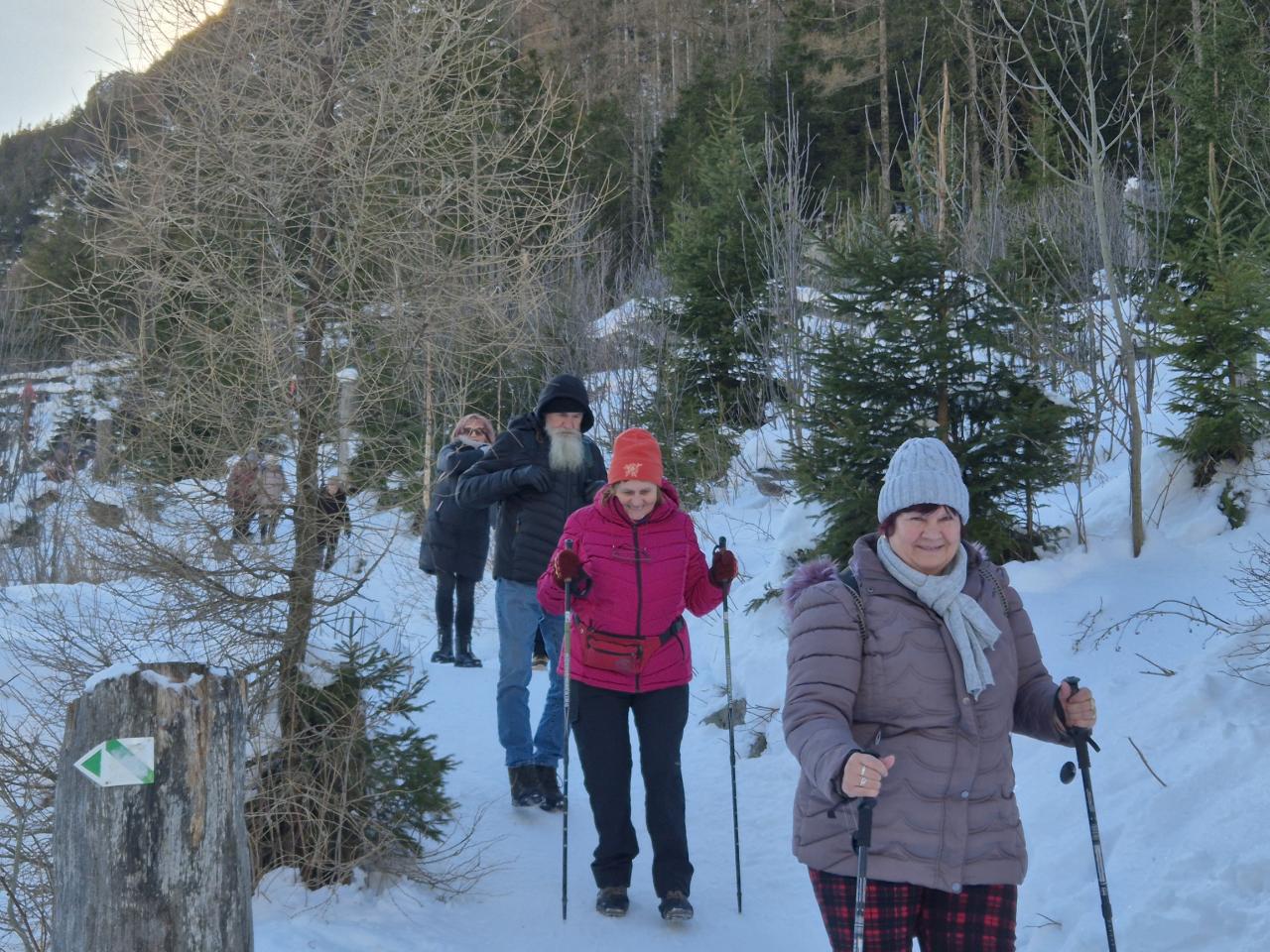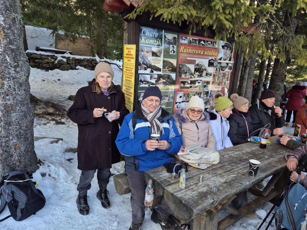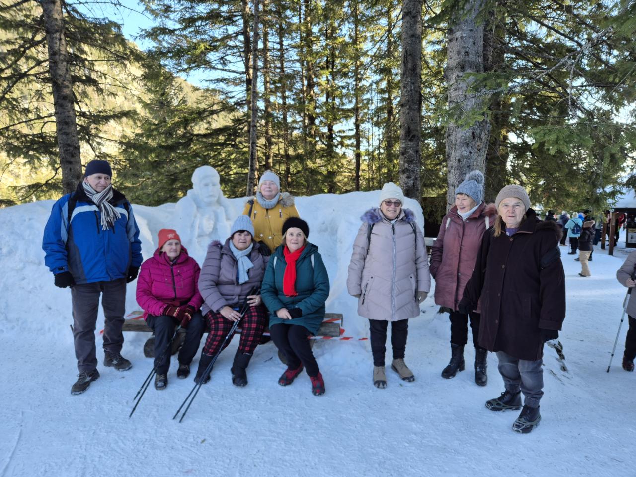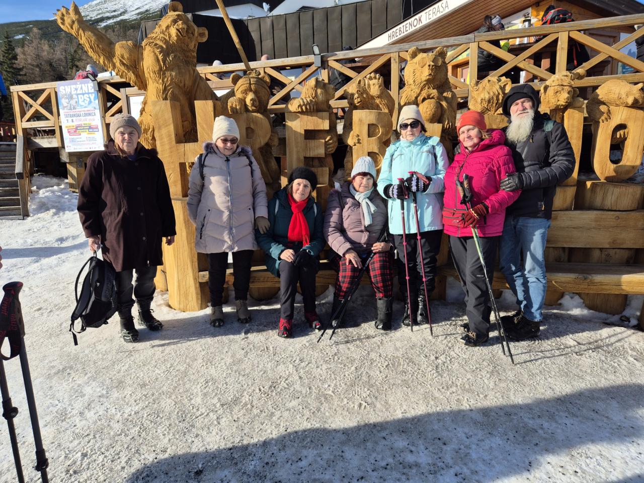Výlet na Hrebienok (21.01.2026) Aj tento rok sme navštívili ľadový dom na Hrebienku. Obdivovali sme ľadové výtvory popri lanovej dráhe, ktoré vytvorili umelci v rámci akcie Tatry Ice Master na tému zimnej olympiády. V ľadovom dóme tentoraz vytesali a postavili Lateránsku baziliku z Ríma, ktorá je hlavným chrámom Mesta a sídlom pápeža. Bazilika sv. Jána v Lateráne je považovaná za Matku všetkých kostolov Mesta a sveta. Po prehliadke sme sa vydali na malú túru k Studenému potoku a k Reinerovej útulni, kde sme si pozreli ľadový betlehem chatára Petrasa, posilnili sa horúcim nápojom a zjedli prinesené maškrty. Po obede v Starom Smokovci sme sa električkou odviezli až na Štrbské pleso a cestou sme obdivovali zasnežené štíty a vychutnali si krásne výhľady do okolia. Na stanici v Štrbe sme si pozreli systém zubačky s výkladom našej železničiarky Oľgy. Krásne slnečné počasie umocnilo v nás zážitky z umeleckých ľadových výtvorov. Cesta vlakom v príjemnej spoločnosti našich seniorov nám veru ubehla rýchlo, tentoraz bez meškania.